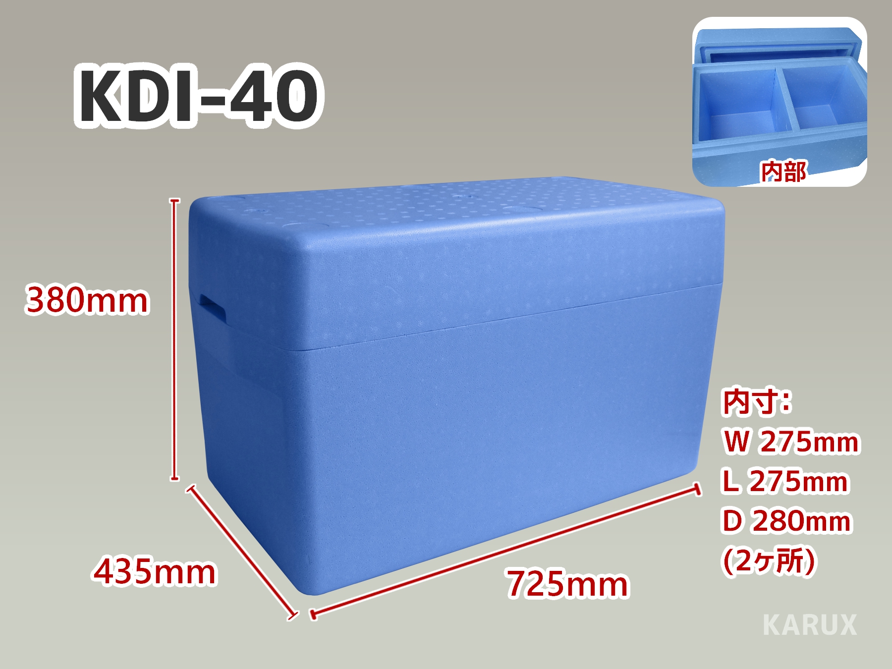 KDI-40は、ドライアイス保冷用専用箱として開発され好評いただいている[KDI-20]の大容量版として開発された製品です。